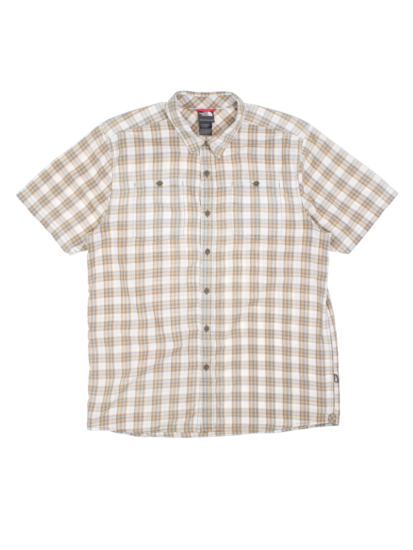 Refresh your wardrobe with The North Face Brown Checked Short Sleeve Cotton Shirt. The breathable cotton material ensures a lightweight and comfortable fit, ideal for everyday adventures, travel, or casual outings. Featuring a classic checked design in versatile brown tones, this shirt channels 90's workwear vibes while offering the durability you expect from The North Face. Its relaxed fit in size L flatters most body shapes, and the twin chest pockets add practicality. The short sleeve construction makes it perfect for warm-weather activities. Pair effortlessly with jeans or shorts for an easygoing, timeless look.