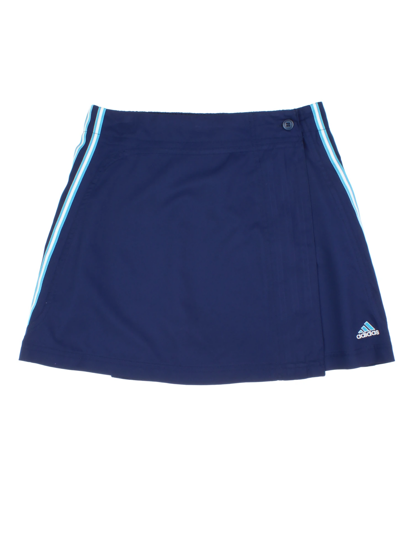 Elevate your athletic wardrobe with this authentic Adidas navy blue sports skirt, crafted from durable polyester for maximum performance and comfort. Featuring signature sky blue stripes down each side and subtle Adidas branding, this skirt is designed for active women seeking both classic style and functionality. The elasticated waistband ensures a secure yet comfortable fit in women’s size M, making it ideal for tennis, gym sessions, or casual sporty outings. Its lightweight material and athletic cut allow for ease of movement, while the vintage-inspired look adds stylish flair to your sportswear collection. Pair with your favourite trainers or athletic tops for a sleek, timeless ensemble built for speed and style.