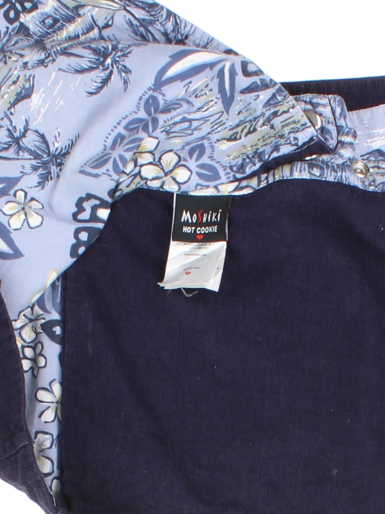 Revamp your wardrobe with this Moshiki Corduroy and Floral Blue Mini Skirt, offering a playful Y2K-inspired style that is perfect for sunny days and music festivals. This reversible skirt is expertly crafted from soft corduroy and lightweight cotton, allowing you to switch between a deep navy solid and a vibrant blue tropical floral print. The snap button detailing provides secure closure with a decorative touch, while the size S fit offers a flattering and versatile look for women. Pair it with your favourite tops and footwear for a statement outfit that transitions seamlessly from day to evening. Ideal for casual wear or special occasions, this skirt is a must-have for those who love fun, bold fashion.
