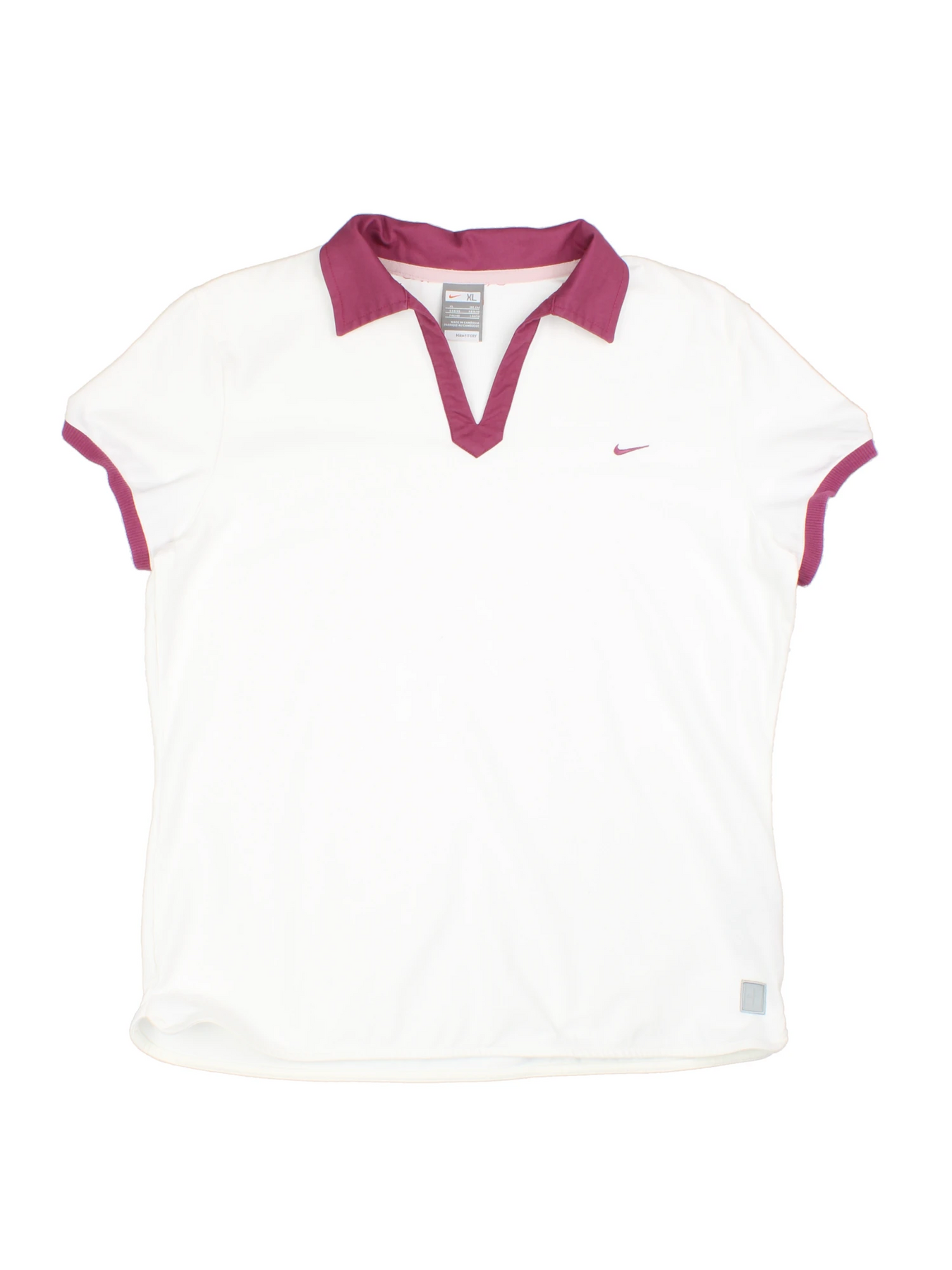 Elevate your casual sportswear with this vintage inspired Nike White and Purple Polo Shirt in size M. Crafted from lightweight and breathable polyester, this polo shirt features a crisp white base accented with vibrant purple trim on the collar and sleeves, showcasing the classic Nike branding. The short sleeve design offers comfort and versatility, making it ideal for active days, training sessions, or simply enjoying a sporty, retro look. With a relaxed fit and a nod to classic sports style, this polo shirt effortlessly combines style and function. Pair with your favourite trainers or sportswear for a timeless athletic ensemble perfect for everyday wear.
