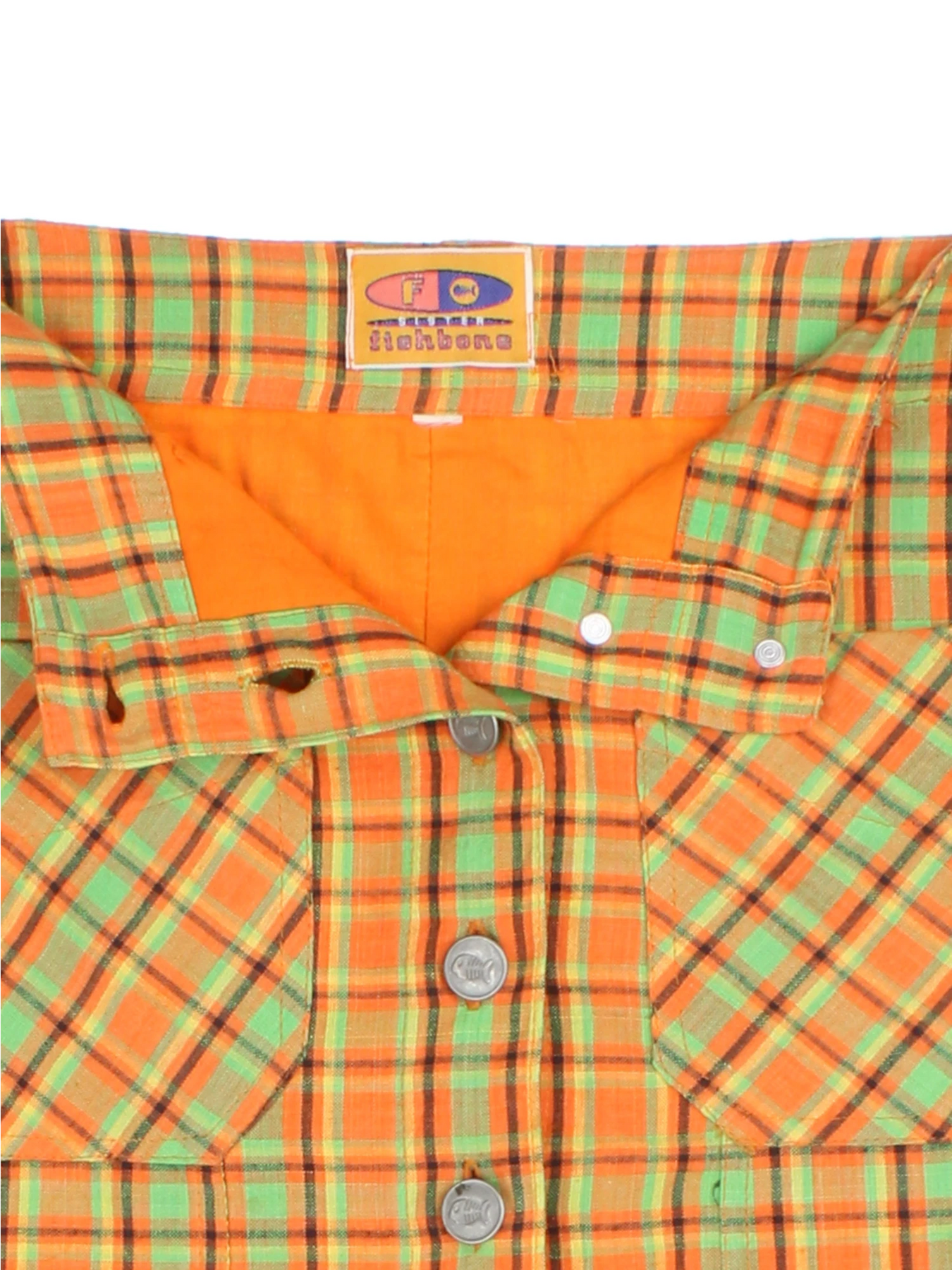 Revive your summer wardrobe with this quintessential Fishbone Vintage Y2K Plaid Mini Skirt, crafted in vibrant orange and green check. This skirt is made from breathable cotton, ensuring you stay cool and comfortable on warm days. The playful plaid pattern screams retro Y2K vibes and is perfect for festival season or daytime adventures. Two functional front pockets add a practical touch, while the front button-down design makes it easy to wear and style. The flared silhouette in a Size L flatters your shape, blending casual comfort with standout style. Pair this mini skirt with a simple tee or crop top for an effortlessly trendy look—perfect for women who love vintage flair and retro nostalgia.
