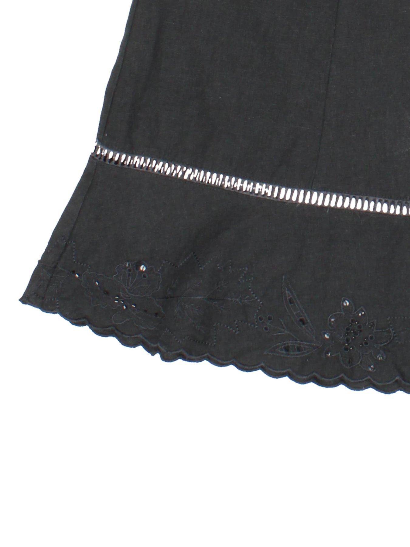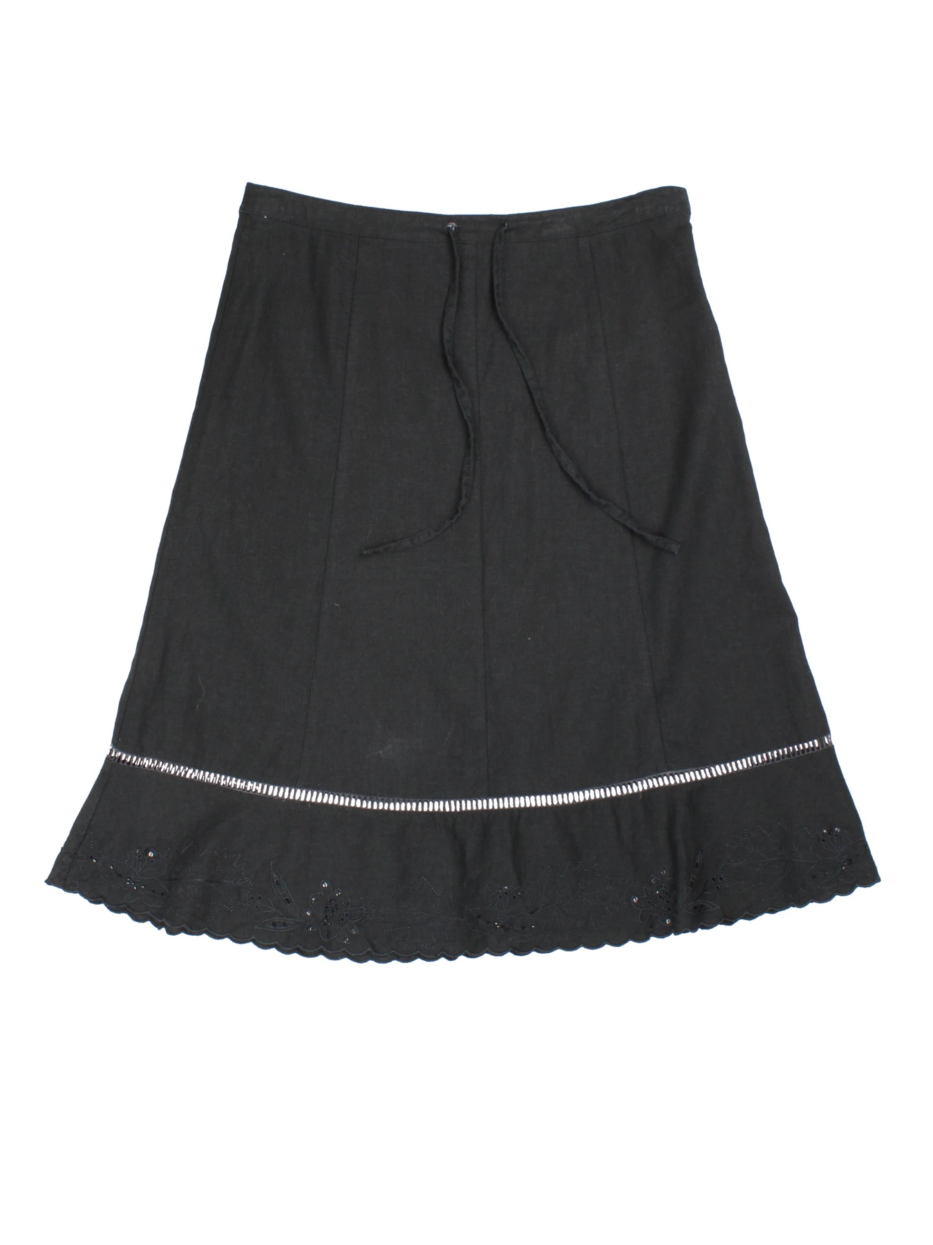 Step into a world of timeless style with the BHS Black Cotton Midi Skirt, tailored in a versatile women’s size XL. This skirt is expertly crafted from breathable cotton for everyday comfort, featuring elegant floral embroidery and a scalloped hem that bring a delicate, feminine touch. The midi length creates a chic silhouette perfect for both office environments and casual outings. Finished in a classic black shade for easy outfit pairing, this skirt is ideal for elevating your workwear or day-to-evening wardrobe. Pair it with blouses or knits and heeled boots or flats for an effortlessly stylish ensemble.