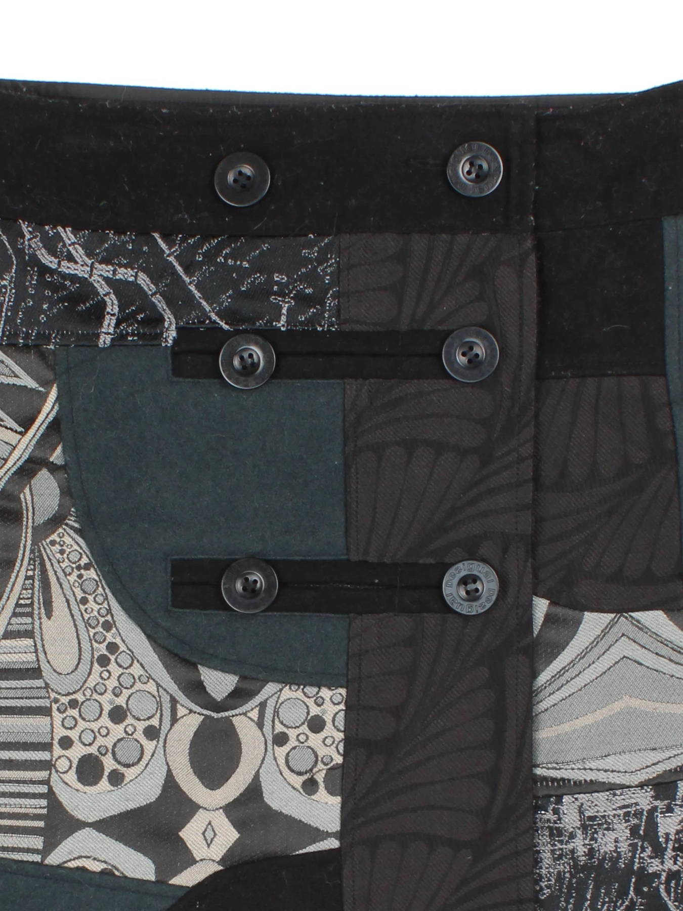 Embrace bold individuality with the Desigual Patchwork Mini Skirt, crafted from a combination of multicoloured corduroy for a truly vintage-inspired statement. This mini skirt showcases a unique patchwork design in classic shades of black and grey, accented with intricate button detail for a retro touch. Cut in a flattering size XL, it offers a chic yet playful option for women seeking distinct Y2K apparel. The Desigual Patchwork Mini Skirt is perfect for those who appreciate eclectic, artistic style and premium comfort. Pair it with a fitted blouse or an oversized knit for day-to-night versatility and elevate your wardrobe with this standout piece from the beloved Desigual label.