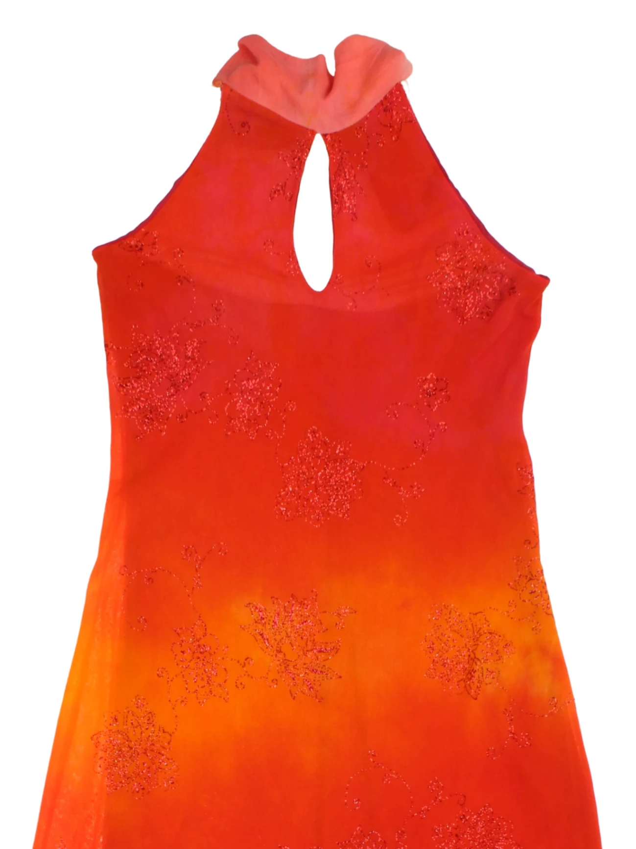 Step out in striking fashion with this vibrant Coconuda Orange Floral Beaded Handkerchief Hem Dress. Featuring a dazzling orange and red handkerchief hem, this dress brings a unique Y2K flair to your wardrobe. Detailed with delicate floral beading, its lightweight polyester fabric ensures breathability and comfort for all-day events, garden parties or festival days. The halter neck with tie and keyhole neckline adds sultry sophistication. An eye-catching must-have, it pairs perfectly with sandals or heels for statement summer looks.