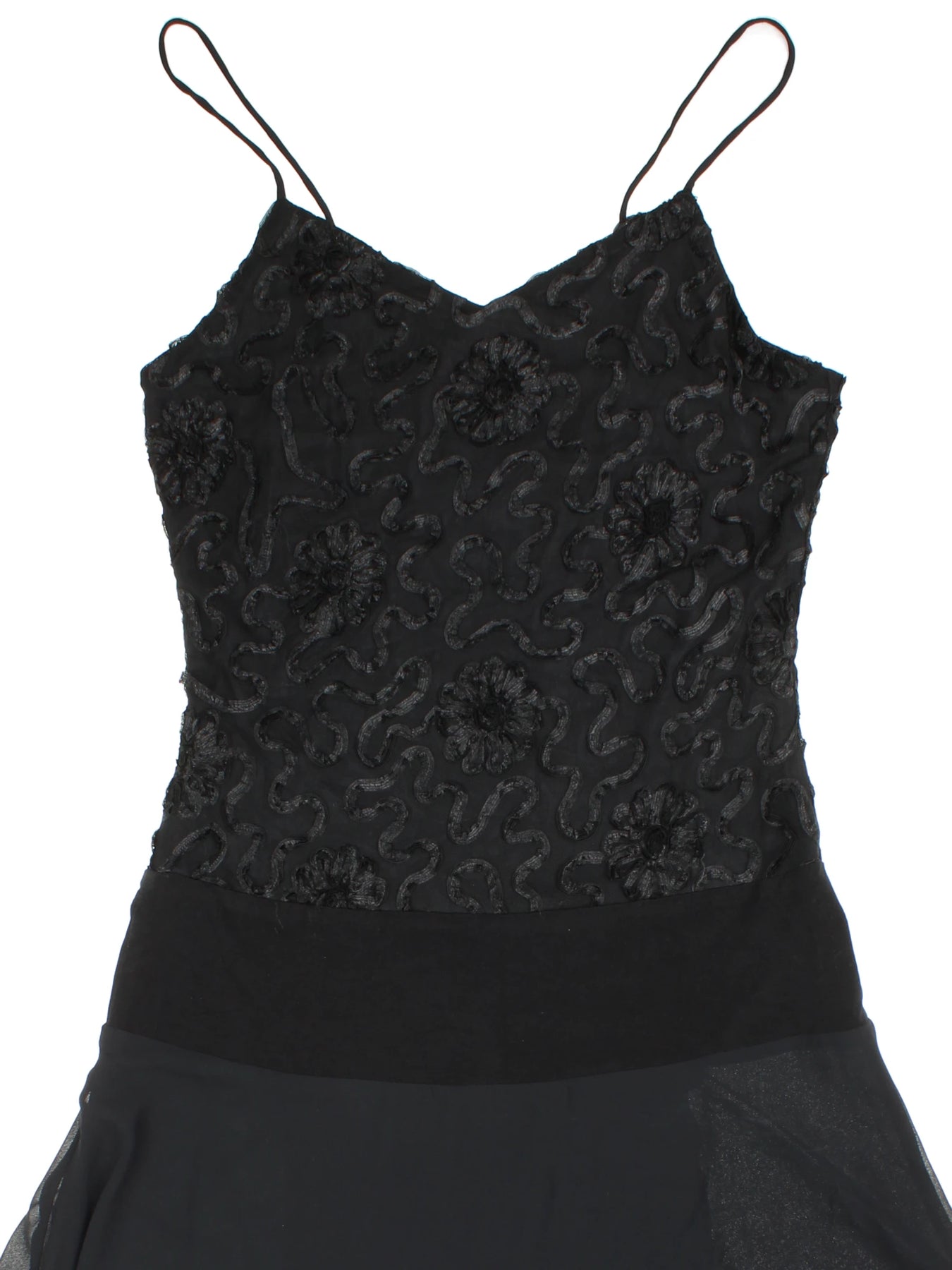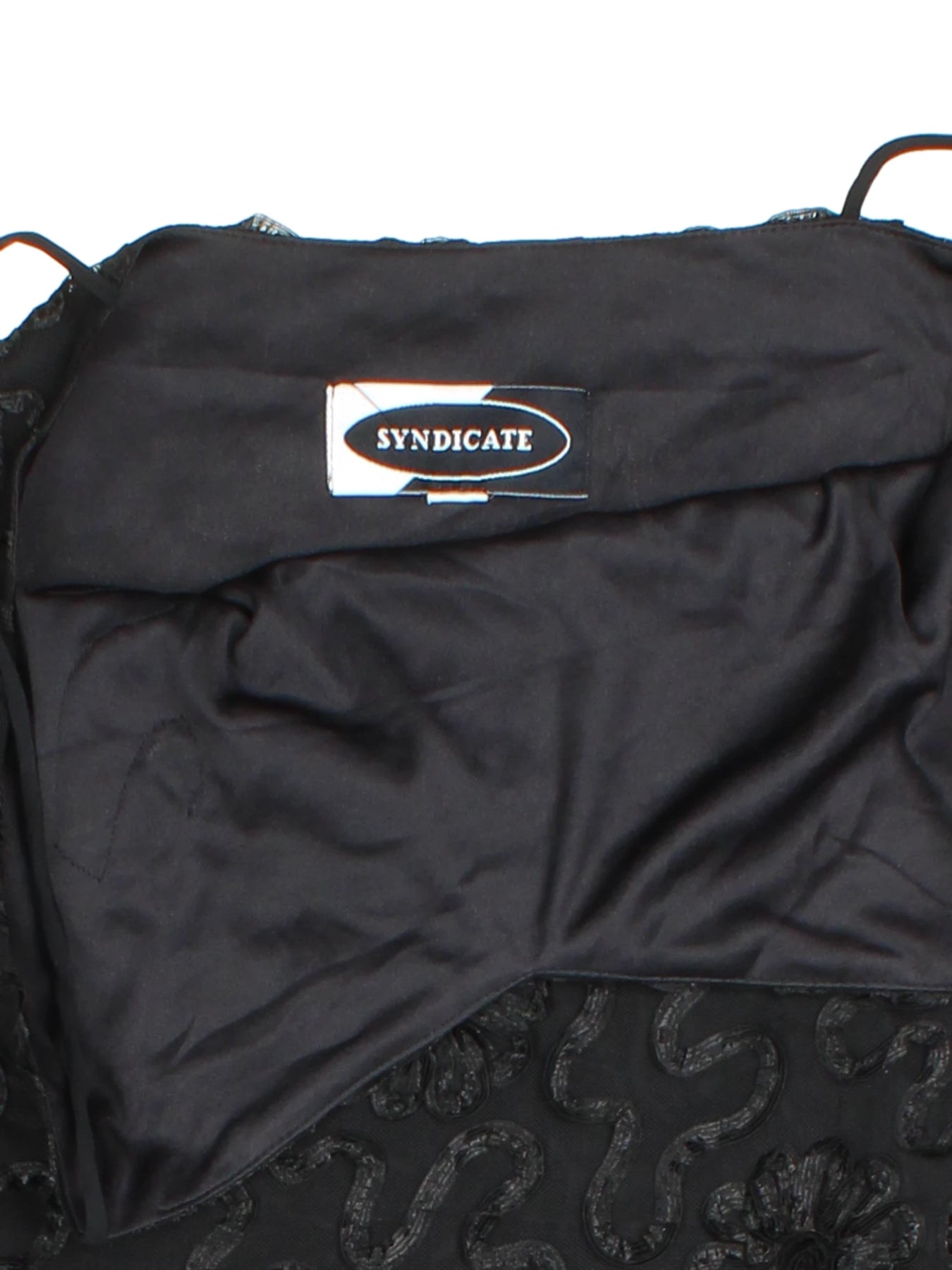 Step into sophisticated evenings with the Syndicate Black Strappy Embroidered Midi Dress, a vintage-inspired statement piece perfect for elegant night outs or special events. Expertly crafted for women in a classic black tone, this dress features exquisite floral embroidery on the bodice with delicate layering for a beautiful, flowing silhouette. The lightweight polyester material ensures a comfortable wear, while the unique asymmetrical hem adds a touch of modern style. Designed in size XXS for a flattering and confident fit, this timeless midi dress is ideal for pairing with your favourite heels or bold accessories for an eye-catching look. Embrace versatility and elegance with this striking eveningwear addition to your wardrobe.
