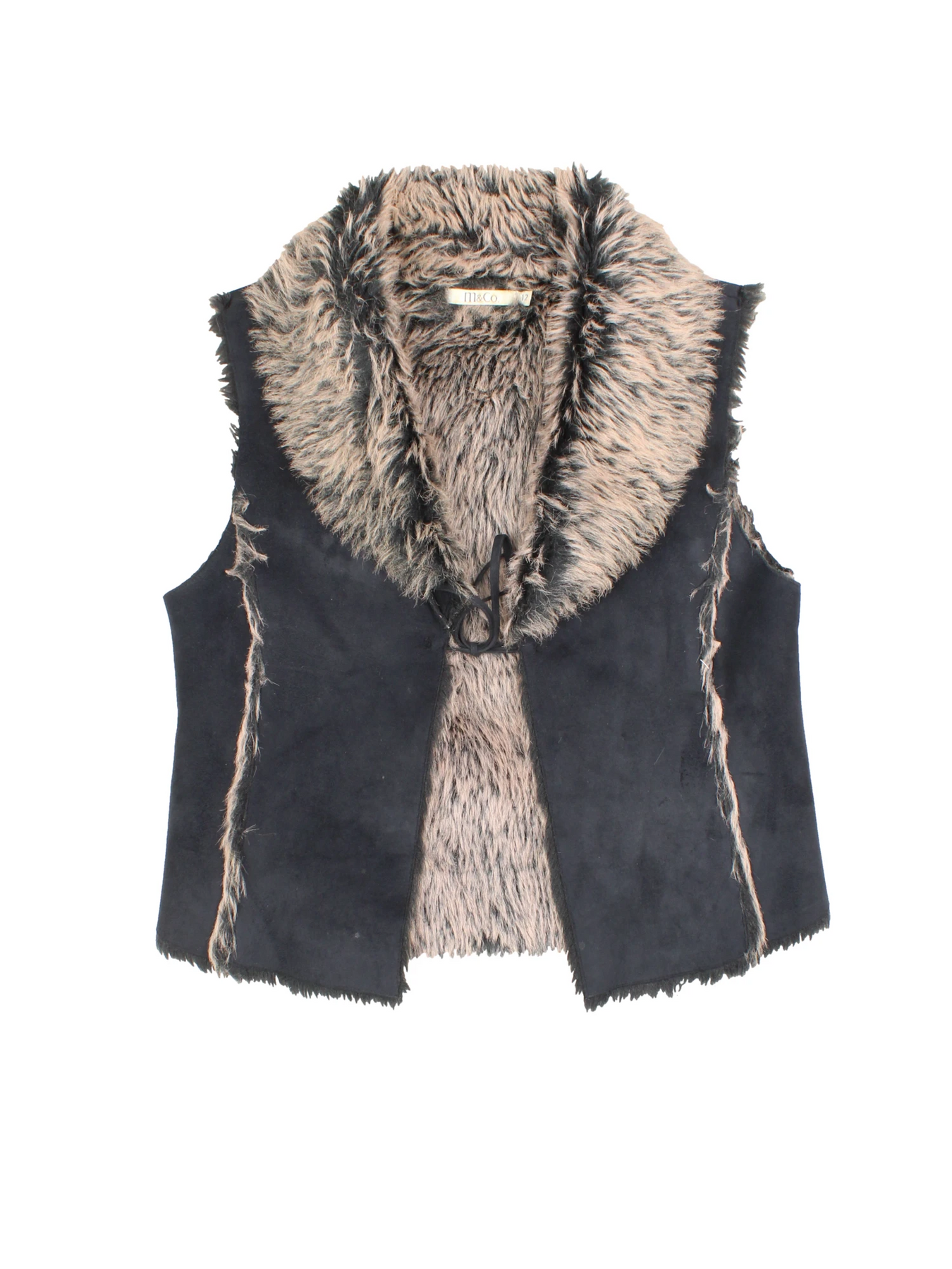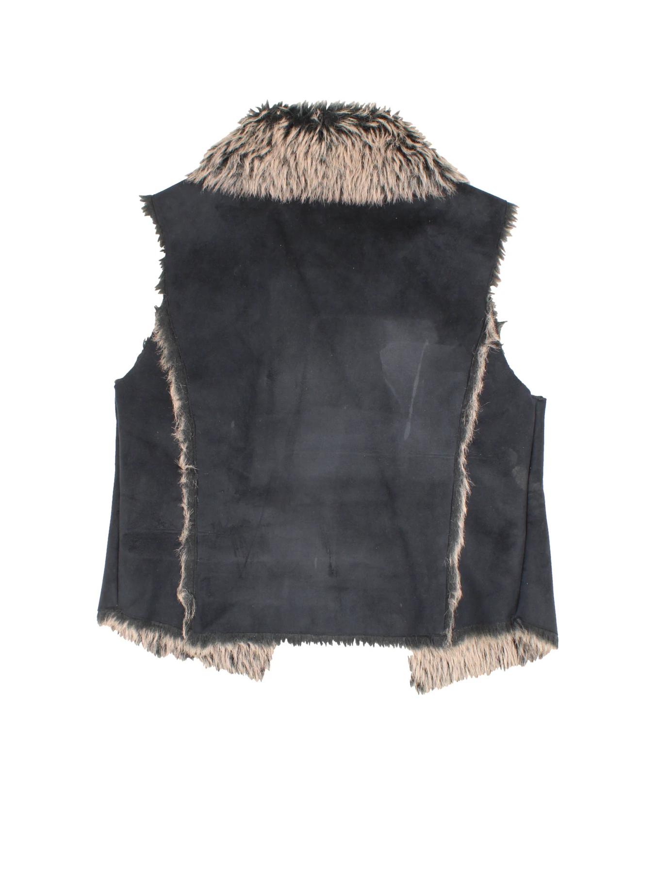 Step into effortless retro style with this M&Co Faux Fur Lined Black Suede Effect Afghan Gilet Vest in size M, perfect for channeling a chic 70s boho vibe. Featuring a soft faux fur lining and shawl collar for warmth and comfort, this vest boasts a striking black exterior with beige and black contrast furry trim. Ideal for layering over long sleeve tops and dresses, this versatile vest adds instant flair to any autumn or winter look. Whether styled for casual outings or festival wear, this Afghan-inspired gilet combines vintage-inspired fashion with modern comfort to ensure you stand out with every wear.