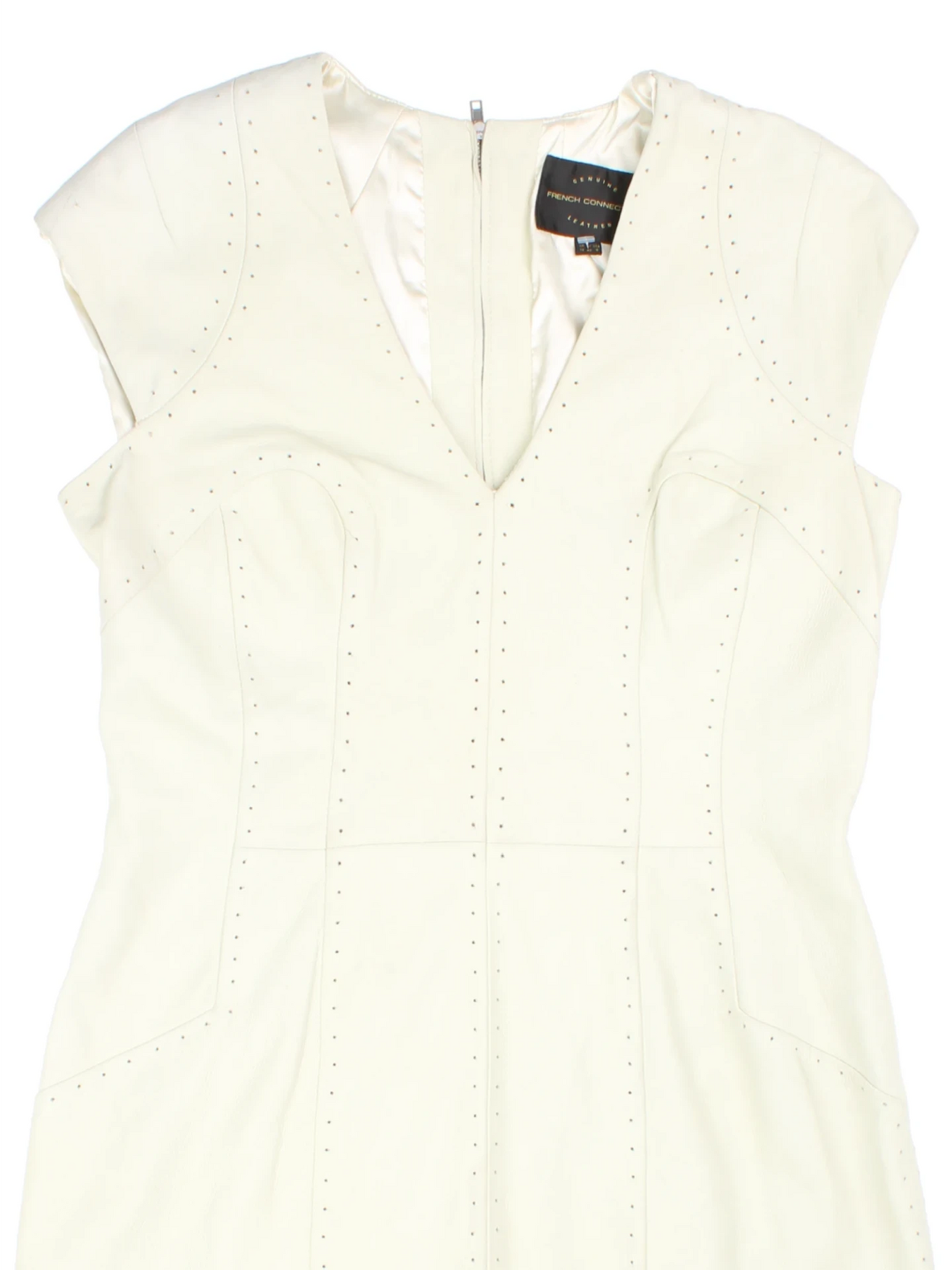Step into sophistication with this stunning French Connection Cream Leather Mini Dress. Expertly crafted from supple leather, this dress features an elegant mini silhouette with refined stud detailing and a flattering size S cut. The premium cream colour brings effortless versatility, perfect for special occasions, evenings out, or adding a chic twist to daytime looks. With its soft inner lining and contoured panels, it ensures both style and comfort. Pair with heels or boots for a head-turning ensemble set to impress.