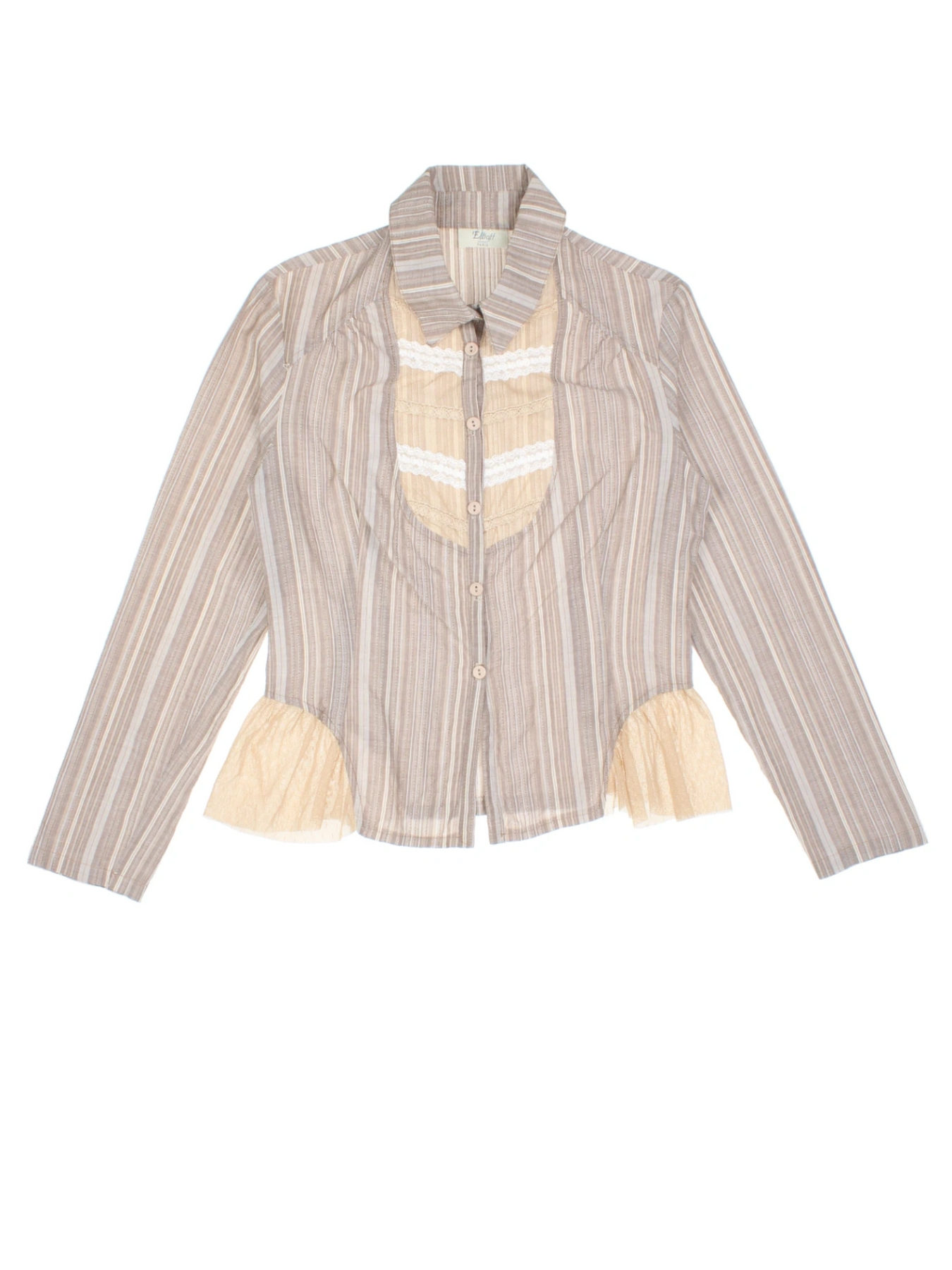Y2K Frill Stripe Mesh Shirt (Size S)