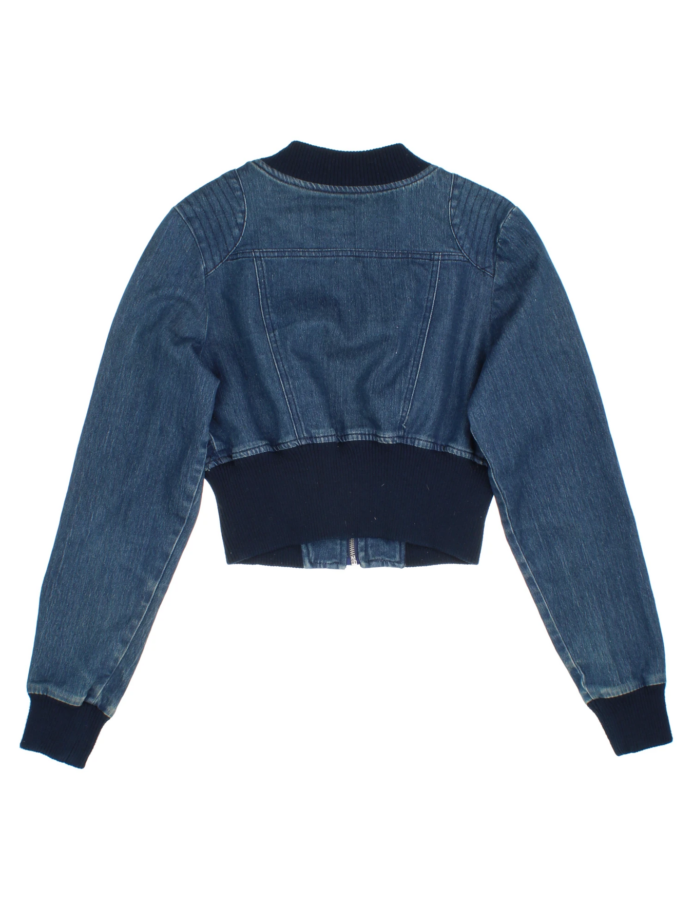 Add vintage flair to your wardrobe with this Jane Norman Cropped Denim Bomber Jacket in a striking blue shade. Designed and expertly crafted with sturdy denim, this Y2K vintage-inspired piece features a flattering cropped fit, ribbed collar and cuffs, and four functional zip pockets at the front. With quality stitching and unique panelling, this jacket is perfect for those who appreciate statement outerwear with everyday versatility. Ideal for layering over dresses or casual outfits, it offers a comfortable XS fit and instantly upgrades street and casual looks. Whether for daily wear or special occasions, this distinguished denim bomber is a must-have statement piece for denim lovers and vintage collectors alike.