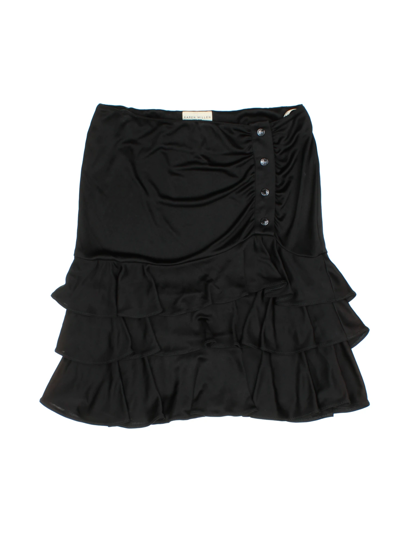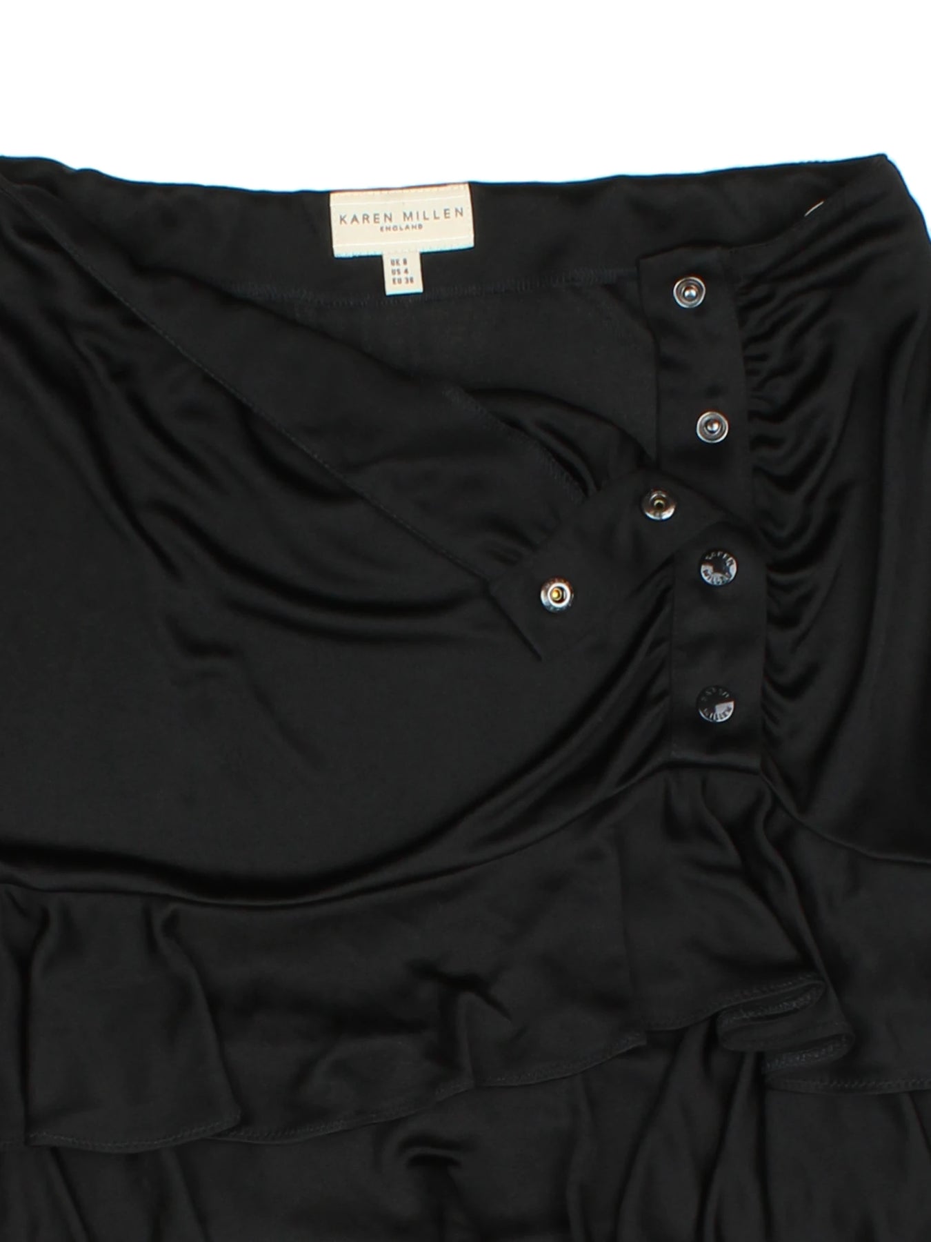 Elevate your occasionwear with this Karen Millen Black Ruffle Mini Skirt, meticulously crafted to deliver sleek sophistication and a flattering silhouette. Designed in a glamorous satin-look finish, this skirt features double-tiered ruffle layers that create a playful, flared effect, making it a standout piece perfect for parties or refined evenings. The chic black hue ensures maximum versatility, easily pairing with a dressy blouse or a simple top for a high-impact look. With its side button detail and structured fit in size XS, it’s tailored for women who appreciate quality and style. Whether you’re headed to a special event or dressing up for a night out, this Karen Millen skirt will help you stand out with confidence and grace. Add this timeless, ruffled mini to your wardrobe for an instant touch of elegance.