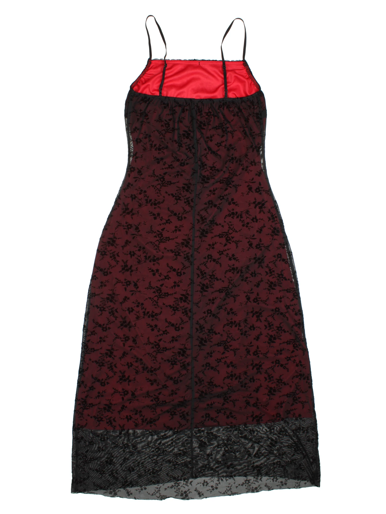 Step into sophistication with this Red and Black Velvet Floral Maxi Dress, expertly crafted to reflect the timeless charm of the Y2K fashion era. This women's dress features a luxurious black velvet floral overlay on a striking red base, offering an eye-catching contrast that’s perfect for evening events and special occasions. The lightweight polyester fabric ensures comfort and breathability, while the sleeveless, strappy design creates a flattering and feminine silhouette. Designed in size M, this maxi dress is ideal for those who appreciate a blend of elegance and vintage style. Pair with heels or statement jewellery for a show-stopping look.