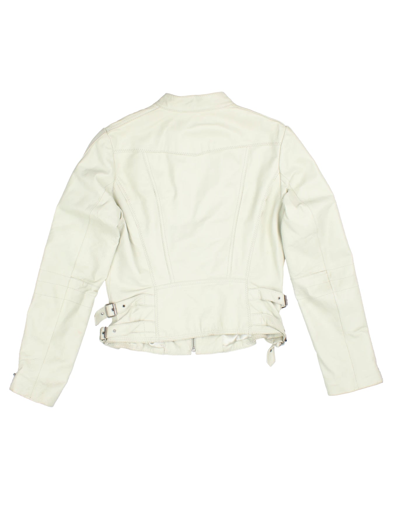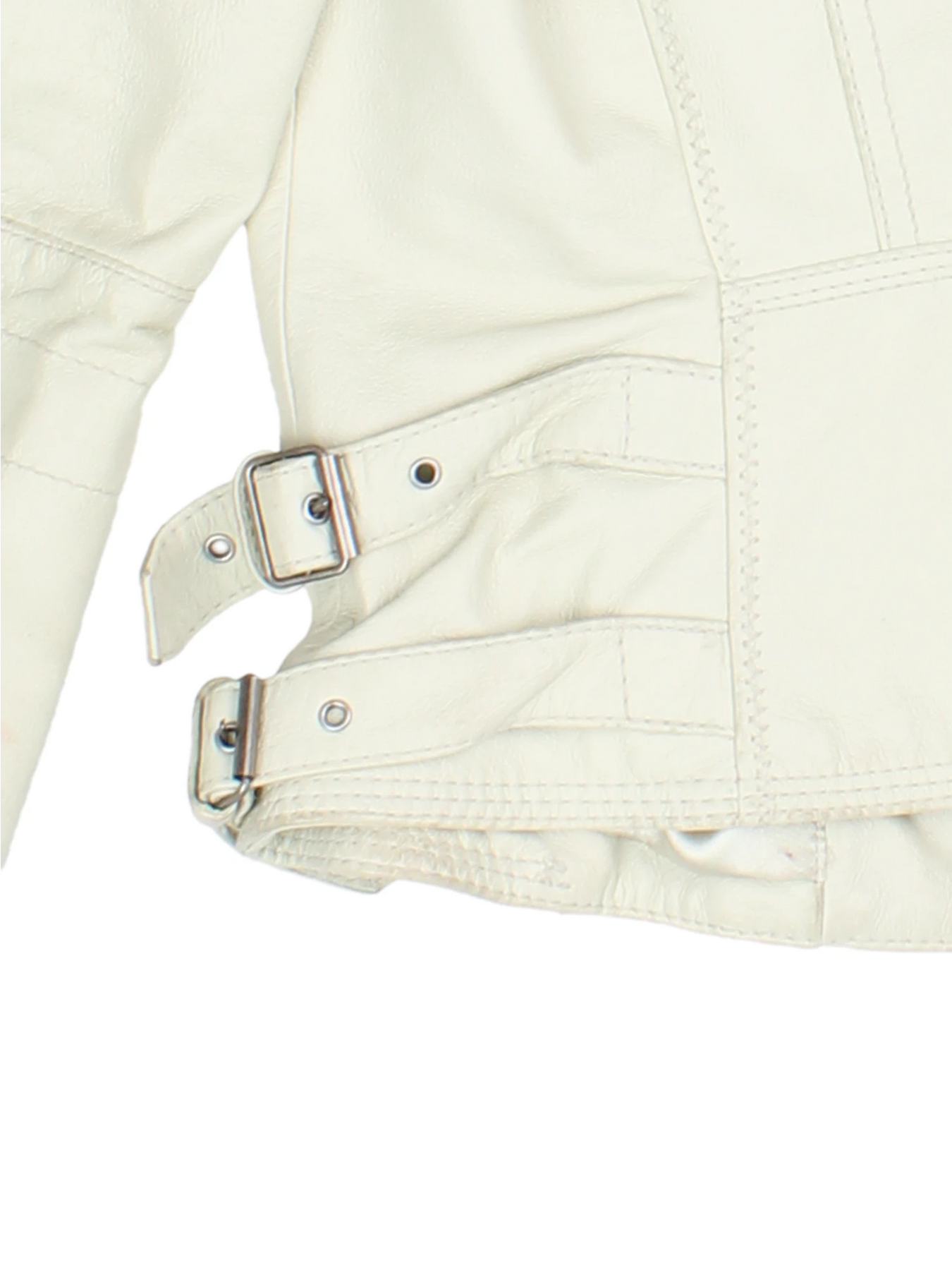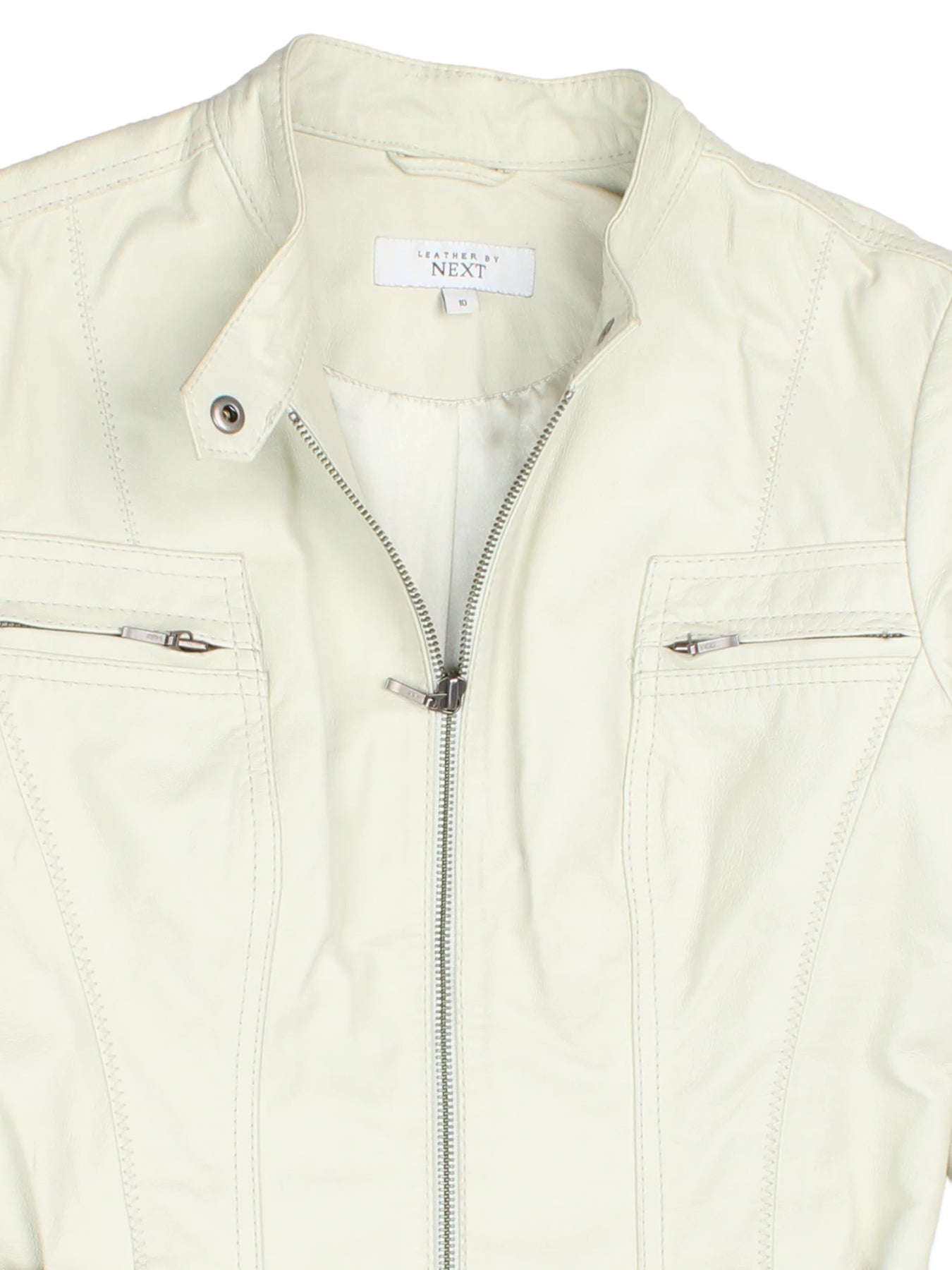Elevate your outerwear collection with this stylish white leather biker jacket by Next. The supple leather offers premium comfort and durability, making this jacket perfect for layering on brisk days and evenings out. Distinctive features include twin chest zip pockets, subtle seam detailing, and fashionable belted side buckles for a custom fit and city-chic edge. Designed in size XXS, its tailored profile and moto silhouette provide a flattering fit that’s ideal for Y2K inspired streetwear looks. Pair effortlessly with denim or dresses for versatile high-impact styling. This sophisticated jacket is a standout choice for day-to-night wear, capturing timeless biker appeal and everyday sophistication.