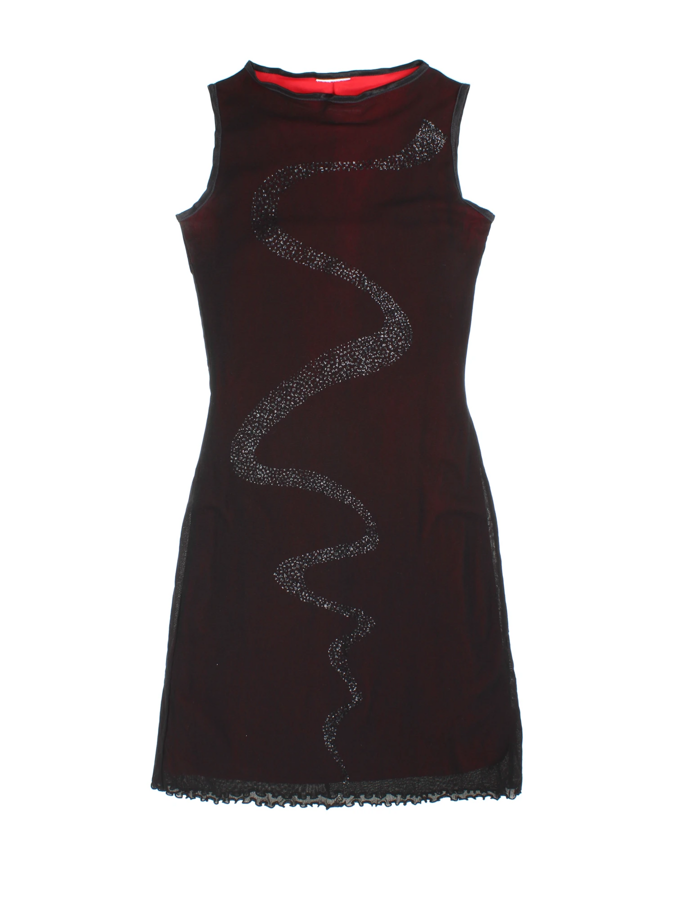 Elevate your evening style with this Vintage Sleeveless Mini Dress in chic black, graced with eye-catching rhinestone spiral detailing for a modern Y2K vibe. Crafted from mesh, this dress hugs your silhouette, delivering a flattering shape perfect for night outs or special occasions. The sleeveless cut and short length provide comfort and ease of movement, making it an ideal choice for parties or festive gatherings. A refined ruffle trim on the hem adds a playful touch, ensuring you stand out with fashion-forward elegance. Pair with heels for an unforgettable look that blends retro inspiration with contemporary flair.