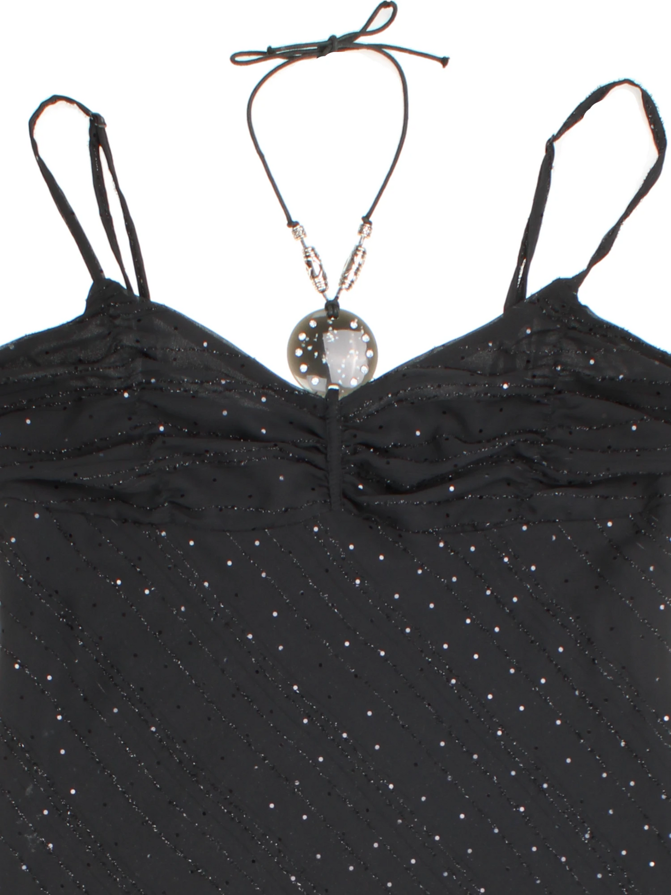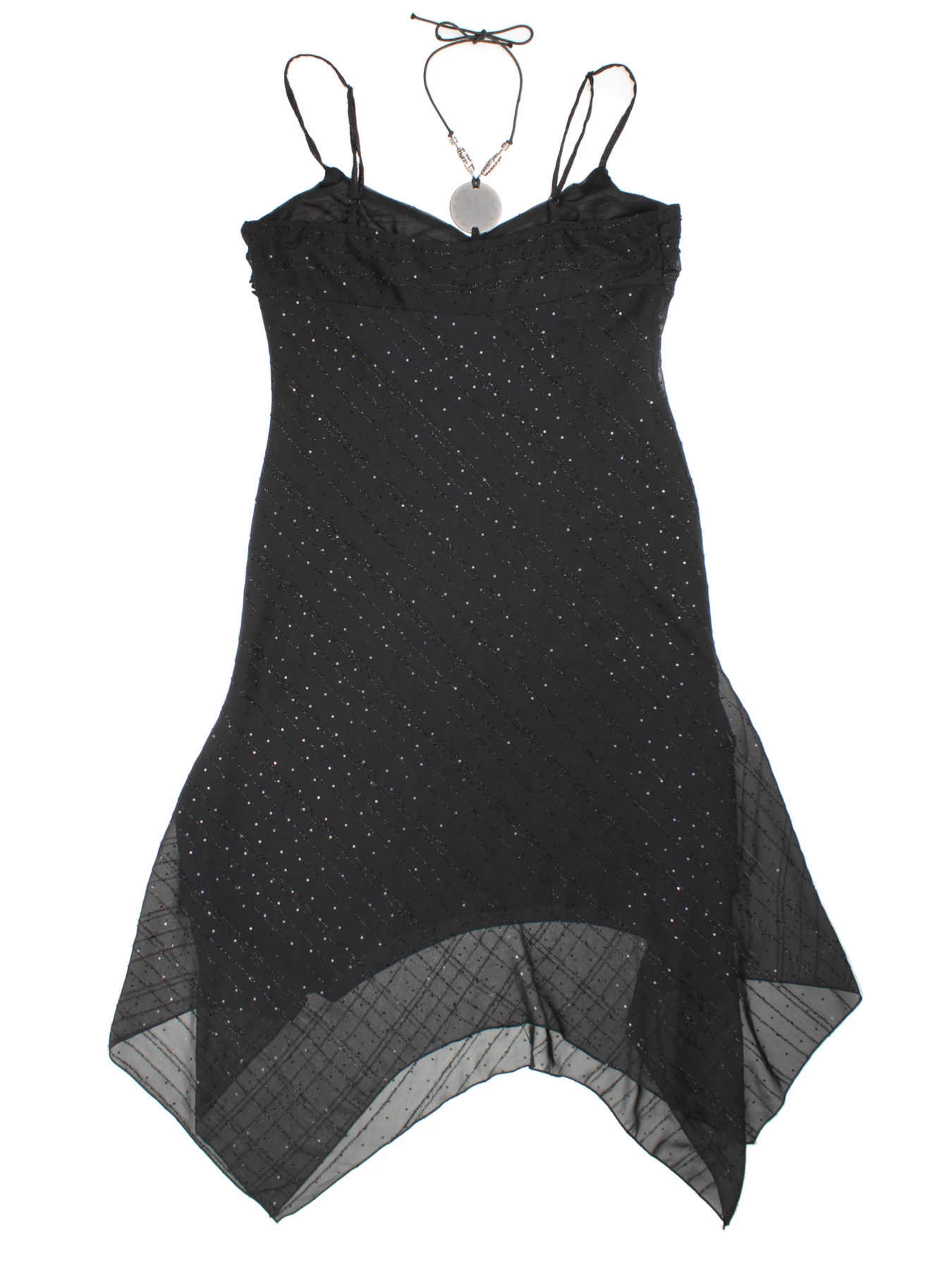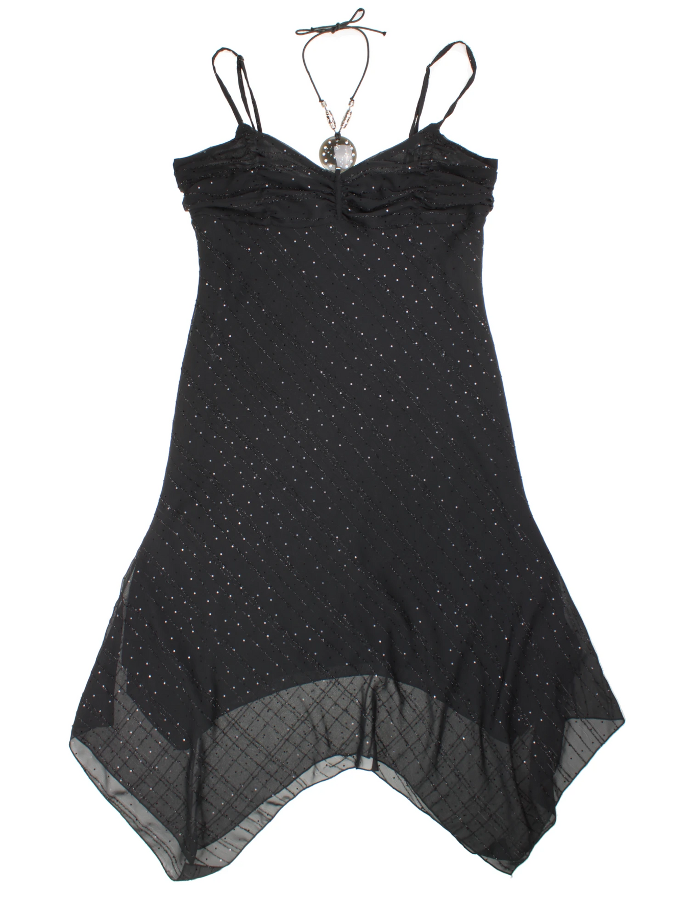 Step into elegance with this stunning BAY Women's Black Midi Beaded Evening Dress, designed to capture the glamour of Y2K fashion. The dress features a sparkling handkerchief hem and beaded detailing for a metallic shimmer that is perfect for evening events, parties, or special occasions. Crafted in lightweight polyester, this dress offers a flowing silhouette that drapes gracefully over the body, ensuring comfort and sophistication for every wearer. The adjustable spaghetti straps and included necklace add a touch of customisable style, making this dress a must-have statement piece. Pair it with heels and a clutch to elevate your evening look and turn heads at every event.