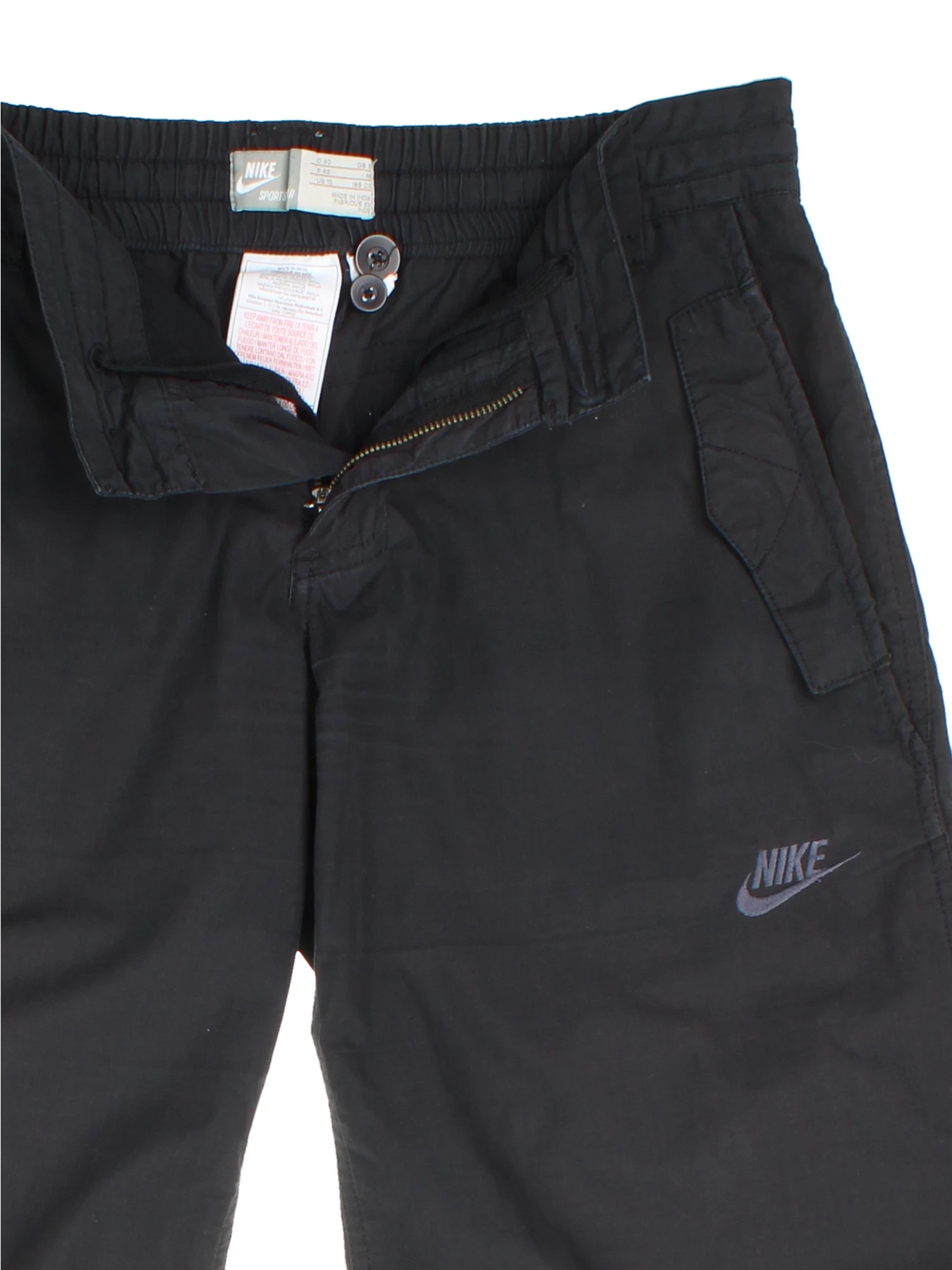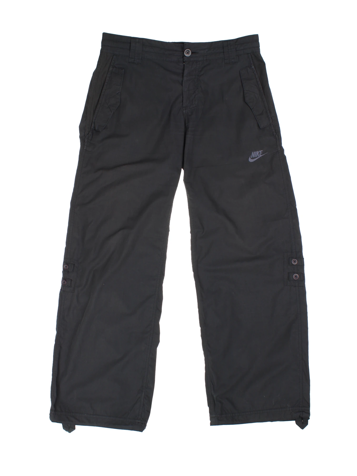 Upgrade your streetwear rotation with these black Nike Cargo Trousers, crafted from quality cotton for all-day comfort and durability. Featuring practical cargo pockets and a relaxed fit, these vintage-inspired trousers embody classic Y2K style, perfect for casual wear or urban adventures. The elastic waistband and secure button-zip fastening ensure a comfortable fit, while the iconic Nike logo gives them a standout appeal. Designed in a versatile black shade, these trousers are ideal for pairing with tees, hoodies, or jackets for effortlessly cool looks. Step up your everyday outfits with this essential street-style piece that blends function and fashion seamlessly.