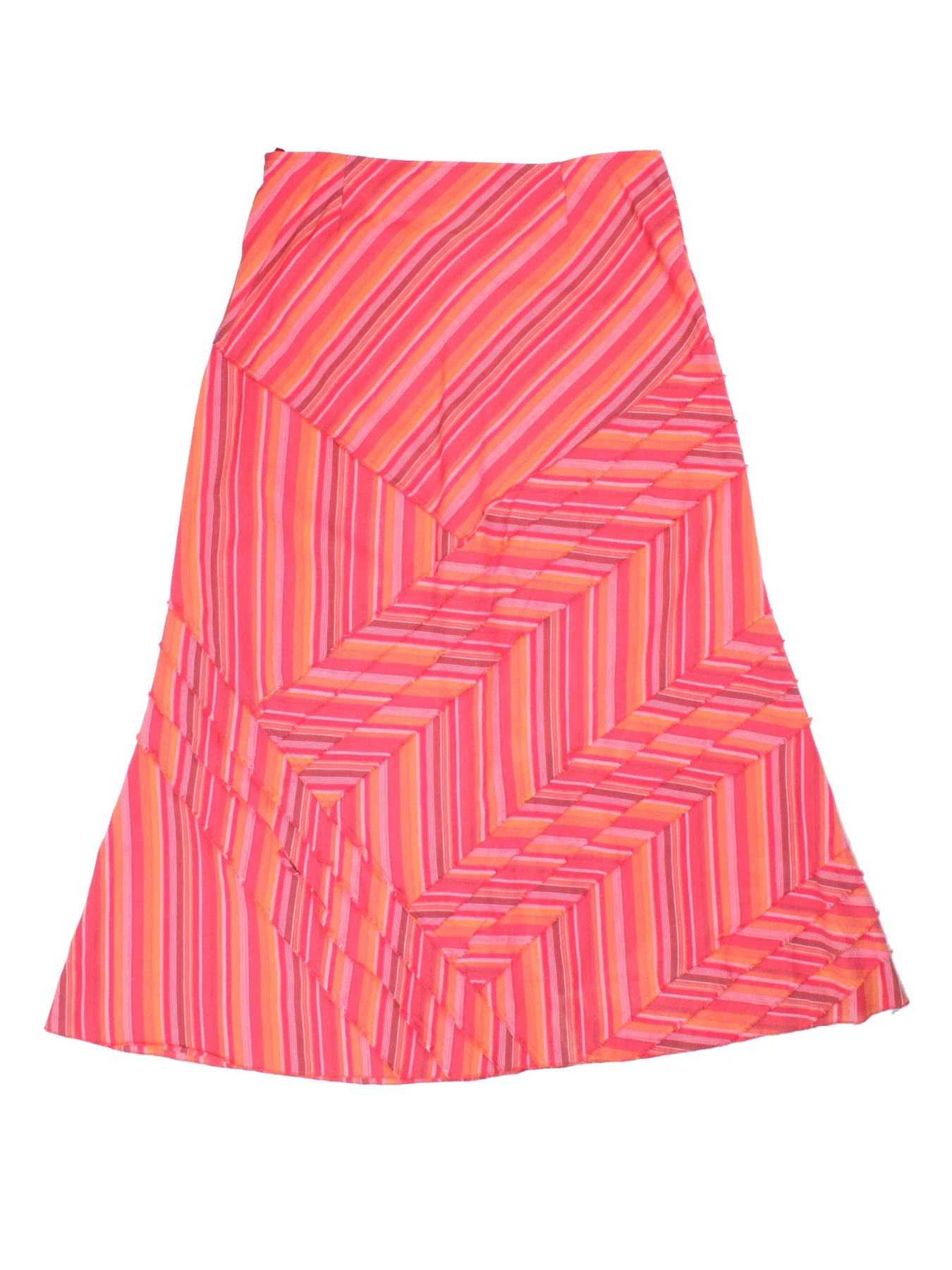 Step into bold elegance with the stunning Per Una Striped Pink & Orange Cotton Midi Skirt, expertly crafted for effortless style. The eye-catching diagonal and vertical striped pattern in bright pink and orange brings striking retro vibes that are perfect for daytime outings or city brunches. Made from lightweight, breathable cotton, this skirt ensures day-long comfort and coolness in warm weather. Designed with a size XXL fit, the classic A-line silhouette flatters a range of body types, creating feminine movement with every step. An essential for women who love vintage-inspired fashion, this skirt pairs beautifully with sandals or trainers, making it a must-have versatile piece in any wardrobe.