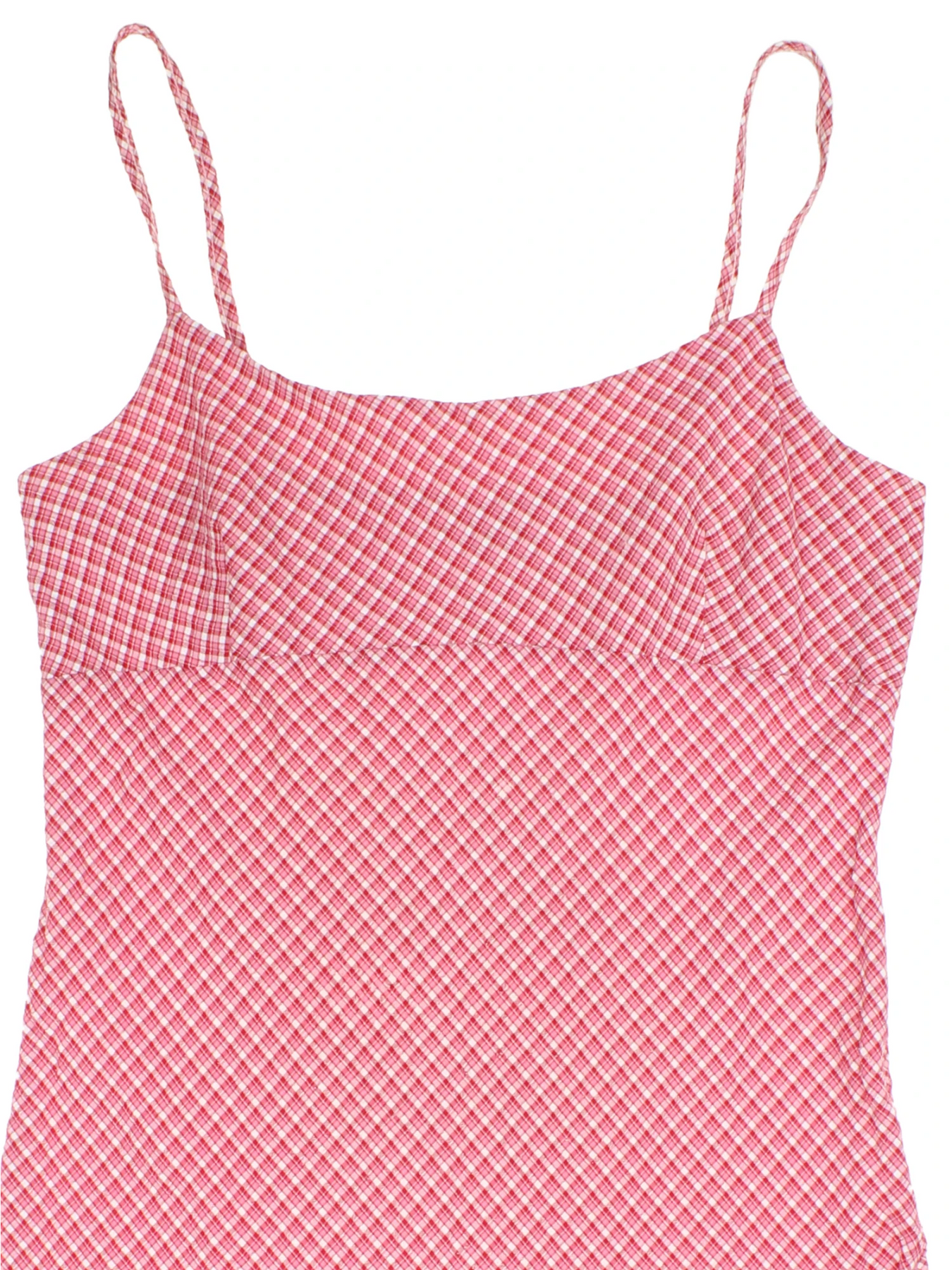 Step into style with the vibrant Pinkie Red Checked Cotton Dress, a delightful addition to your wardrobe celebrating the spirit of Y2K retro fashion. Crafted from lightweight, breathable cotton, this dress offers a comfortable and flattering fit ideal for outings, be it casual brunches or picnics. The soft pink checked pattern exudes a playful vintage charm, while the slim shoulder straps and fitted bust create a dainty silhouette. Elevate your summer and festival outfit collection with this timeless mini dress—a versatile essential that promises both style and comfort.