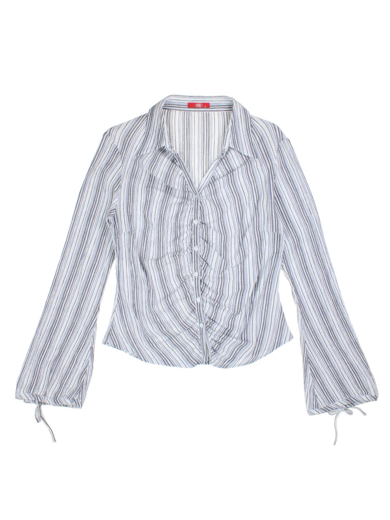 Elevate your everyday wardrobe with this beautifully tailored EDC by Esprit Blue White Striped Cotton Button-Up Blouse Shirt, crafted in luxurious cotton for all-day comfort. This Y2K-inspired blouse features a classic collar, subtle ruched front detail, and full-length sleeves with adjustable tie cuffs, creating a timeless, elegant silhouette. The crisp blue and white vertical stripes evoke effortless sophistication, making it perfect for casual lunches, office attire, or brunch with friends. Pair with tailored trousers or denim for a classic yet modern look that transitions seamlessly from day to night. Add a touch of vintage chic to your collection and experience a wardrobe staple that's as versatile as it is stylish.