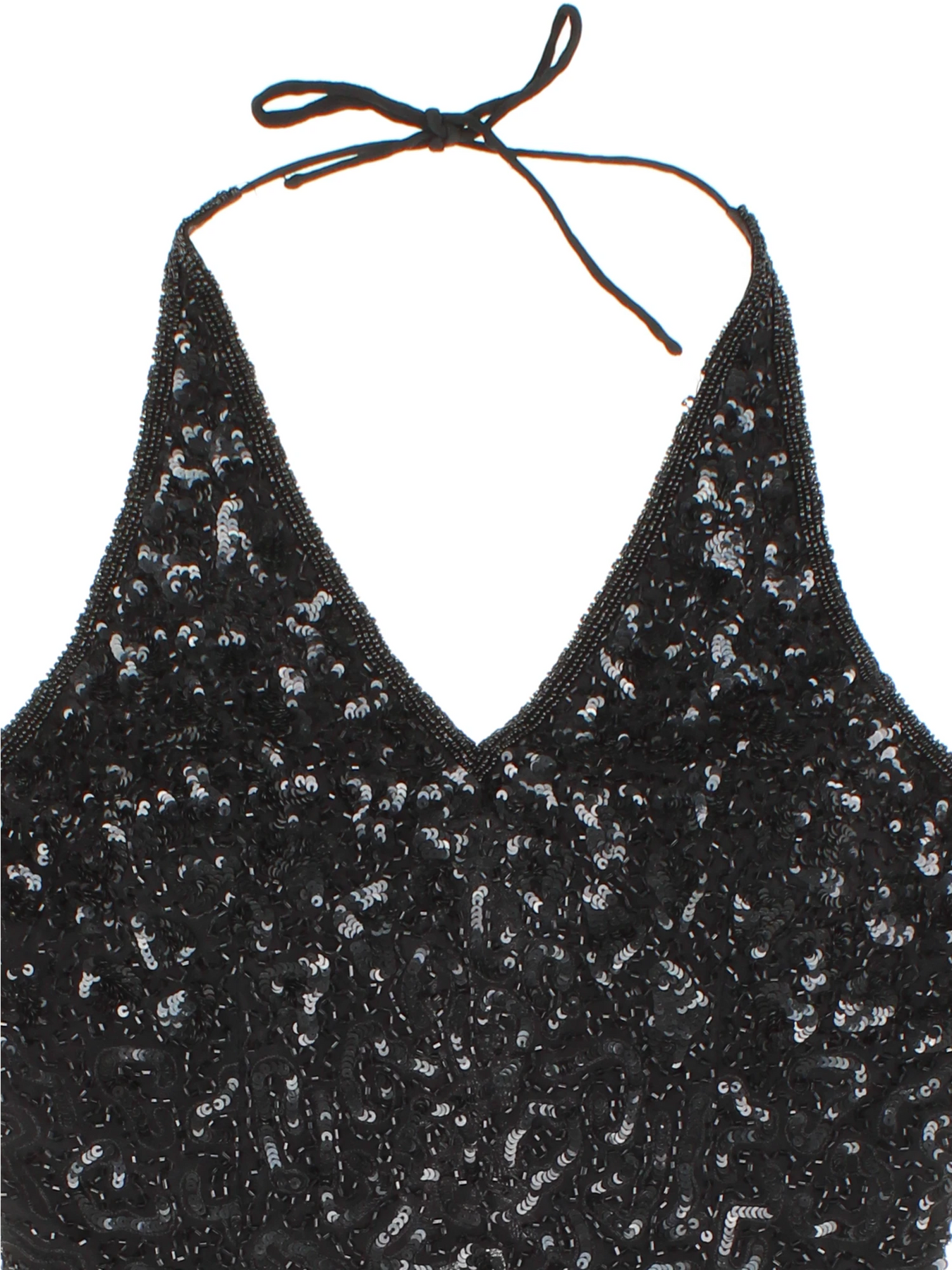 Turn heads at your next event with this stunning Aftershock Black Sequin Halter Corset Top, designed for a bold and glamorous Y2K-inspired look. This top combines shimmering sequins and a flattering halter neckline with corset-style lace-up details, making it the perfect statement piece for parties and festive nights out. The size XXS fit ensures a sleek silhouette, while the comfortable polyester material feels gentle against the skin. Pair it effortlessly with high-waisted trousers or a skirt for that iconic 2000s party style. Ideal for women who want to channel vintage vibes with a chic twist, this top promises confidence and flair in every setting.
