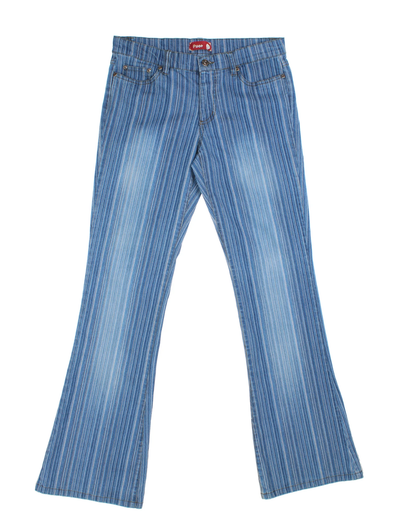 Step back into the iconic era of style with these Pilot Flared Blue Striped Denim Jeans, crafted for women who love standout vintage fashion. Featuring a striking striped blue wash and a classic flared silhouette, these L-sized jeans bring a retro Y2K vibe to your wardrobe. The durable denim material provides a comfortable fit and reliable wear, perfect for everyday adventures or making a bold statement at casual outings. Designed for effortless Y2K-inspired looks, these jeans complement crop tops, oversized jumpers, or vintage tees. The back and front pocket details ensure a classic finish, combining practicality with head-turning style. Revitalise your denim collection with these must-have flares that guarantee comfort, durability, and unforgettable nostalgic flair.