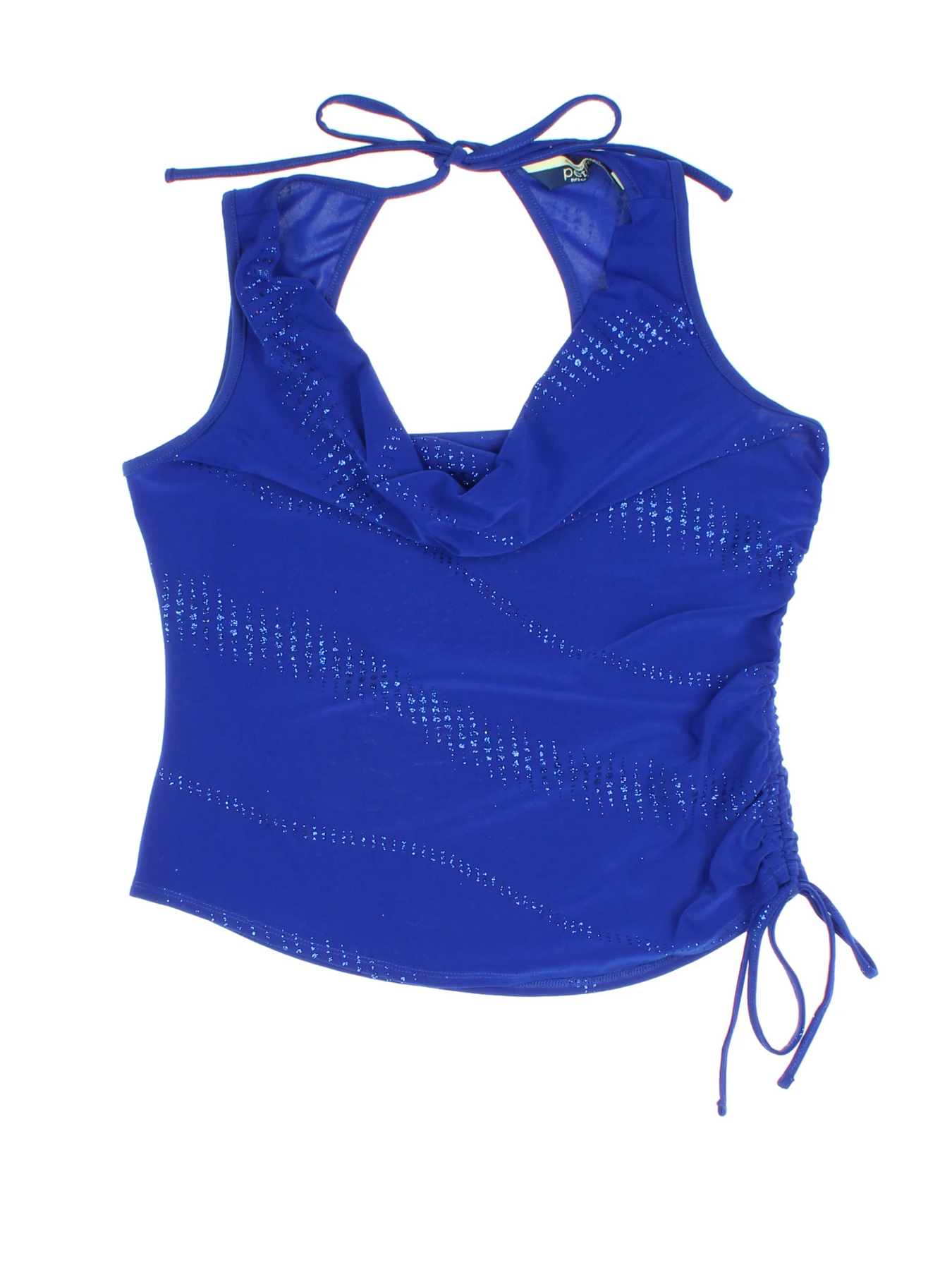 Add a pop of colour to your wardrobe with this Dorothy Perkins Petites Blue Halter Neck Sleeveless Top in a striking blue shade, perfect for making a statement on any casual outing. Crafted from high-quality polyester, this top features delicate glitter accents, giving it a touch of sparkle for a fun and stylish look. The halter neck and adjustable ties provide a flattering fit, complemented by ruched sides for added detail. Designed in a Size XXS for a feminine fit, this Y2K piece is ideal for women seeking standout style with comfort. Pair with jeans or skirts for a versatile, eye-catching day or evening outfit.